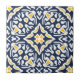 Destaque seu decoro mediterrânico com esses azulejos cerâmicos que apresentam um intrincado padrão geométrico em azul marinho e amarelo-ouro ensolarado, inspirado nos tradicionais azulejos azulejo da Espanha e de Portugal.