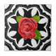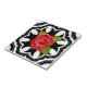 design na moda de azulejo de cerâmica moderna, com um padrão de mosaico sem soldadura feito de formas geométricas em preto e branco e decorado com rosas vermelhas.