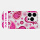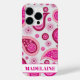 Um padrão rosa e branco moderno inspirado no cenário é a base dessa capa de telefone móvel. Altere facilmente o nome do seu próprio design de cobrir de telefone celular pessoal.