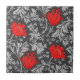 Grande azulejo cerâmico numa vintagem William Morris cor damasco floral de flores e folhas anêmonas, melhorada digitalmente e colorida - cinzas de prata clara / folhas de cinza, e flores em tons de batom profundo vermelho sobre fundo de cinza de grafite escura