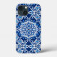 Capa de telefone em um padrão estelar de oito pontas, mosaico, em índigo escuro e azul de cobalto, acentuado com branco