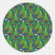 Este é um adesivo festivo embelezado com uma feliz celebração de Natal moderno e colorido padrão digital