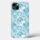 Padrão branco e azul sem costura. Ilha marítima com palmeiras, barco, tartarugas, conchas, contornos. Vetor © e ® Bigstock® - Todos os direitos reservados.