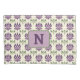 Um padrão lírio decorativo sem soldadura, roxo e verde, dispostos simetricamente para um toque real e decorativo. Este padrão foi feito para wallpaper sofisticado, têxteis de luxo e peças de decoração.