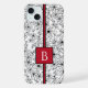 Um padrão floral na moda e feminino com uma estética desenhada à mão. Este padrão clássico preto-e-branco tem uma sensação moderna amolecida com a arte da linha do desenho. Personalize esta capa de telefone bonita com a inicial do proprietário em vermelho para detalhes pessoais extras.