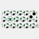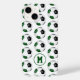 Esta capas de iphone temática de futebol divertido apresenta um padrão simples de bolas de futebol que têm painéis verdes, pretos e brancos sobre um fundo branco personalizável - personalizar com o monograma do atleta - por katz_d_zynes
