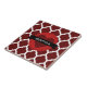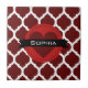 O padrão de latência marroquina em uma cor vermelha escura com uma etiqueta vermelha e preta com o coração para você personalizar facilmente seu nome. Um design de padrão de 'quatrefoil' de tendências que faria um presente personalizado legal para seus presentes de aniversário, Dia de os namorados, Natal ou graduação.