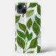 Um padrão sem costura de folhas de chá verde padronizadas e brotos sobre um fundo leve. Design de chá.