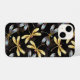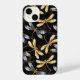 Padrão sem costura com ouro, joias, libélulas brilhantes com asas brilhantes e detalhadas sobre fundo preto. Dourada libélula.