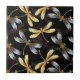 Padrão sem costura com ouro, joias, libélulas brilhantes com asas brilhantes e detalhadas sobre fundo preto. Dourada libélula.