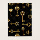 Padrão perfeito de chaves antigas, douradas e silhuetas em fundo preto.