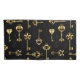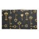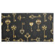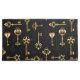 Padrão perfeito de chaves antigas, douradas e silhuetas em fundo preto.