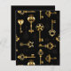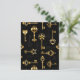 Padrão perfeito de chaves antigas, douradas e silhuetas em fundo preto.