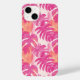 Padrão simples de abstrato com folhas de monstera, samambaia, plantas tropicais, pinceladas, bege, rosa, coral