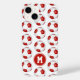 Esta capas de iphone do tema do futebol bonito apresenta um padrão simples de bolas de futebol que têm painéis brancos e vermelhos em um fundo branco personalizável - personalizar com o monograma do atleta - por katz_d_zynes