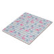 Azulejo cerâmico com um padrão com uma vibração alegre. flamingos e abacaxis cor-de-rosa, colocados sobre um padrão listrado azul claro com folhas e corações ao redor.
