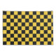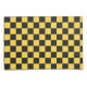 Um padrão xadrez preto e amarelo com quadrados alternados cria um design geométrico ousado. O padrão parece equilibrado e vibrante.