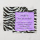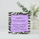 Belo convite de festas de design de pele de zebra, uma borda de zebra combinada com um fundo roxo. um na moda e um convite de festas único, adequado para todo tipo de festa.