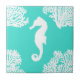 Produtos de padrão costeiro de recifes de cavalo e de corais e ideias de decoração costeira em turquesa e branco. A decoração costeira e de praia, perfeita para a casa de praia ou a casa de praia. designs de mariscos e de corais para a praia ou para a costa.