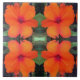 O padrão original nesse grande Azulejo cerâmico foi criado de uma fotografia original de ZoeSPEAK de uma flor impaciente. As seis pétalas da flor são vermelhas, com centro vermelho mais profundo e púrpura. O fundo é formado pelas folhas da planta, em vários tons de verde.