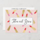 Coordena-se com o padrão de Luxe Glam Lipstick no Modelo de cartão de negócios de Artista Rosa até 1201AM. Um padrão glamouroso de tubos de batom que cai cria um design divertido e atraente neste design de cartões de agradecimentos de beleza. Nos tubos de batom é apresentado um tratamento falso metálico de folha de ouro com cores alternadas rosa e vermelho do lábio. A parte de trás das cartas é personalizada com o seu nome. Perfeito para maquiadores, boutiques cosméticos, lojas online, vendedores de maquiagem Poshmark, estilistas e muito mais. Design e ilustração © 1201AM CREATIVE