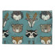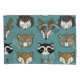 Padrão de Vintage sem costura com animais de floresta bonitos em fundo azul claro. Animais da floresta festejam em padrão de safra azul-claro. A floresta festeja num palco azul claro. Diversão para os sonhos das crianças! sem descontinuidades, padrão, animal, floresta, outono, inverno, diversão, coruja, ouriço, crianças, ilustração, madeiras, fofo, fox, moderno, decor, natureza, rabisco, rosto, azul