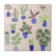 Pintura de plantas caseiras, cactos e suculentos em potes azuis e brancos para jardineiros interiores e pessoas de plantas loucas.