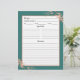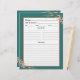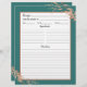 Aqui está a página perfeita de receitas duplas projetada para coordenar com seu aglutinante correspondente. O design, tanto na frente como no verso, apresenta um belo par de folhas botânicas de folha de rosa de ouro falso, na parte superior direita e na parte inferior esquerda, sobre um fundo verde teal, juntamente com espaço para todas as informações necessárias para as suas receitas. Se você tiver uma pergunta sobre design ou quiser ver este design em outro produto, por favor, sinta-se à vontade para entrar em contato comigo em jschmidtdesignworks@gmail.com. Design © Judith Schmidt.