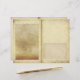 Um papel antigo, criado no estilo de diário de páginas duplas. Este design apresenta padrões esmaecidos e pergaminho de tonalidade terrestre. A parte traseira deste documento tem um design complementar de papel comum. Em uma opção de 8,5x11 polegadas, tudo que você precisa é dobrar ao meio e você terá lindas páginas de revistas de vintage prontas para suas criações. Há mais designs de safra e embelezamentos de álbuns disponíveis em nossa loja do Zazzle, assim como muitos outros estilos de livros de recortes e revistas. Para obter melhores resultados, selecione um papel texturizado mate.