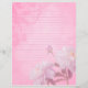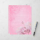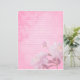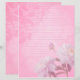 Flor rosa de pénia num fundo decorativo cor-de-rosa com linhas. A parte de trás tem um simples design cor-de-rosa. Página romântica de diário floral ou de papelaria.