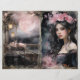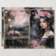 Diário Místico Vitoriano Lady Balcony, cor-de-rosa, Lixo Rosa, com diferentes trabalho de arte de cada lado, estilo de vintage, senhoras e flores em azul luar. Para os seus projetos de registro de lixo.