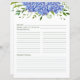 Esta página de receitas trará muita alegria e amor ao seu chá de casamento! Feche um com cada convite para chá e peça aos convidados que os encham e os tragam ao chá de casamento onde você pode facilmente deslizá-los para folhas protetoras claras que você colocou no dentro o Binder de Recipiente Floral de Hidrografia Azul Hydrangea Floral Watercolor. As páginas são elegantes e encantadoras e têm muito espaço para as pessoas escreverem as nossas receitas favoritas para partilharem com a noiva em si. A sua bela design, com hídrangas azuis multicêntricas e sabores delicados de verde natural no estilo de aquarela contemporâneo, é perfeita para qualquer casamento floral, jardim, romântico, vintage ou formal.