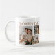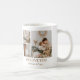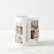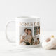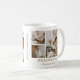 Caneca de café Feliz Natal com 6 fotos e texto que diz "PAI BONUS, FELIZ NATAL, NÓS AMAMOS VOCÊ" e é personalizada com os nomes das crianças. A caneca é facilmente personalizada e os estilos de letra, tamanho e cores podem ser alterados clicando no link personalizar mais após a personalização.