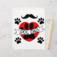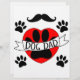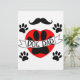 Uma pata de cachorro imprime em um coração vermelho com texto em fita. Design original com patas e bigode. Uma ideia de presente para os homens.