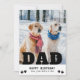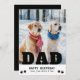 Pai De Cachorro Feliz Aniversário Moderno Personalizado Cartões de Saudação Fotográfica. Este design moderno apresenta uma camada de texto preto "PAI" na sua foto favorita em um fundo branco com o texto editável "Feliz Aniversário (seu texto e nome)" é escrito em tipografia moderna, destacada por estampas de pata. Personalize o texto editando a caixa de texto.