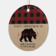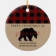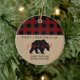 O primeiro Natal como o ornamento do pai com vermelho e o preto verificam o teste padrão da xadrez e o urso da papá em kraft.