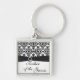Este chaveiro preto e branco chique do damasco com fita e jóias do falso combina o convite do casamento mostrado abaixo. Faria um presente ideal da festa de casamento, ou uma lembrança bonita para seu sogro. Você pode mudar o texto a qualquer coisa que você quer, e você pode mudar o tamanho e a forma do chaveiro. Se você precisa algum auxílio com personalizamento disto, envie por correio electrónico niteowlstudio@gmail.com.