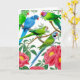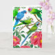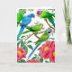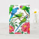 Papagaios coloridos, incluindo derbyan, quaker ou monge, preguiçosos indianos e periquitos cheios de ameixa neste cartão alegre do Two Purring Cats Studio.