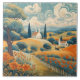 Este item ilustra o campo francês com colinas rolantes, fazenda, árvores, flores e nuvens sábia no céu.