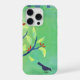 Pintura de dois pássaros negros em um campo verde em primavera. Uma seiva entra em folha e se espalha com flores, e ao fundo estão algumas árvores na borda da floresta. Arte original de Nic Squirrell.