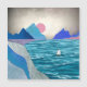 Esta paisagem deslumbrante representa um veleiro solitário numa encosta oceânica isolada rodeada por montanhas com um céu tempestuoso e texturas e cores ousadas.