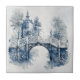 Paisagem azul e branca do estilo Delft com plantas azuis, árvores, rio, bela ponte e uma pequena decoração de igreja para todos que gostam do estilo Delft inspiraram decoração. É uma excelente de presente para o Natal, aniversários etc. e você pode decorar sua casa com esta bela e única design.