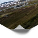Poster impressão de uma pequena aldeia com uma estrada sinuosa em direção a ela entre as montanhas do parque nacional de Jotunheimen, na Noruega.
