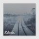 Pintura do nevoeiro sobre pântanos com caminho de madeira, lagoas pequenas e pinheiros. Caminho de caminhada com passarela de madeira que atravessa a âncora.