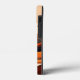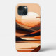 Uma paisagem minimalista e abstrato em tons de laranja-vermelha, marrom, bronzeada com colinas, um rio, e um sol enorme cria uma bela capa de telefone.