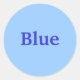 A palavra Azul é impressa a azul sobre um fundo azul claro, sobre adesivos.