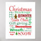 Esta arte alegre de tipografia de Natal será a adição perfeita ao seu decoro doméstico durante o feriado. Esta design apresenta muitas das coisas que você experimenta e estima durante o Natal, todas em uma variedade de fontes e cores vermelha e verde.