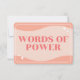 Aproxime-se melhor com este cartão de afirmação da Lei de Atração de JessicaAmber. Esta placa possui um design de dois lados. Na frente está uma palavra de poder, que você pode editar, junto com uma afirmação usando essa palavra. No verso está o título do convés, 'Palavras de Poder'. Edite um cartão, adicione ao carrinho e edite novamente para fazer um baralho de cartas inspiradoras. O fundo é um belo design de formas laranja onduladas e faíscas. Esta é uma ferramenta elegante para aprimorar seu foco espiritual - meditar sobre a frase, ou colocá-la em sua carteira e ser lembrada diariamente do propósito de sua alma. ・ ・ ・ Para mais artigos de papelaria espiritual, visite a minha loja Zazzle.com/In_The_Vortex | Para pedidos personalizados, envie-me uma mensagem no Zazzle