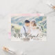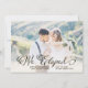 Este anúncio elegante e na moda do elopement do casamento caracteriza a caligrafia preta bonita sobre sua foto pessoal do casamento, e uma lavagem cor-de-rosa macia da aguarela na parte traseira.
