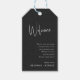 Bem-vinda a etiqueta de presente de casamento, tipografia moderna minimalista e personalizável de guião branca. O fundo de textura impresso na linhagem preta adiciona um toque de uma sensação orgânica e elegância clássica. Outras cores estão disponíveis.